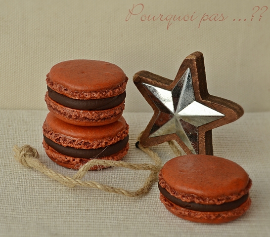 220gr de sucre impalpable - 125gr de poudre d'amandes – 100gr de blancs d'oeufs (séparés du jaune depuis 3 jours et sorti du frigo 2h avant utilisation) – 20gr de sucre en poudre – une pointe de couteau de colorant brun (si vous en avez, moi je n’en ai pas alors j’ai fait un mélange avec du rouge, du violet et du noir, à améliorer, trop orange à mon gout)